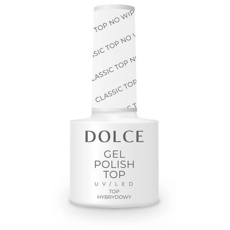 Dolce Top No Wipe Classic jest świecący bez lepkiej warstwy dyspersyjnej. Stosuje się go na zakończenie stylizacji. Jest transparentny i nadaje paznokciom intensywny blask. Doskonale zabezpiecza manicure przed czynnikami zewnętrznymi. Nie nadaje się do zdobień wymagających lepkiej warstwy dyspersyjnej. Top nie żółknie w wyniku działania promieni słonecznych. Dzięki niemu lakier nie odpryskuje.